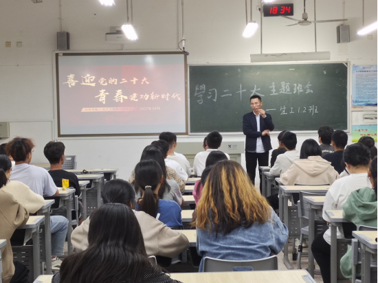 2022年10月16日-22日,党的二十大在北京隆重召开。为回首过往奋斗路,更好领会党的二十大会议精神,更好担当青年使命,10月25日,生物与化学工程学院2022级应用化学、生物工程、生物制药等三个专业共8个班级,在学院党员老师(班主任)的组织下召开了“喜迎党的二十大,青春建功新时代”的主题班会。