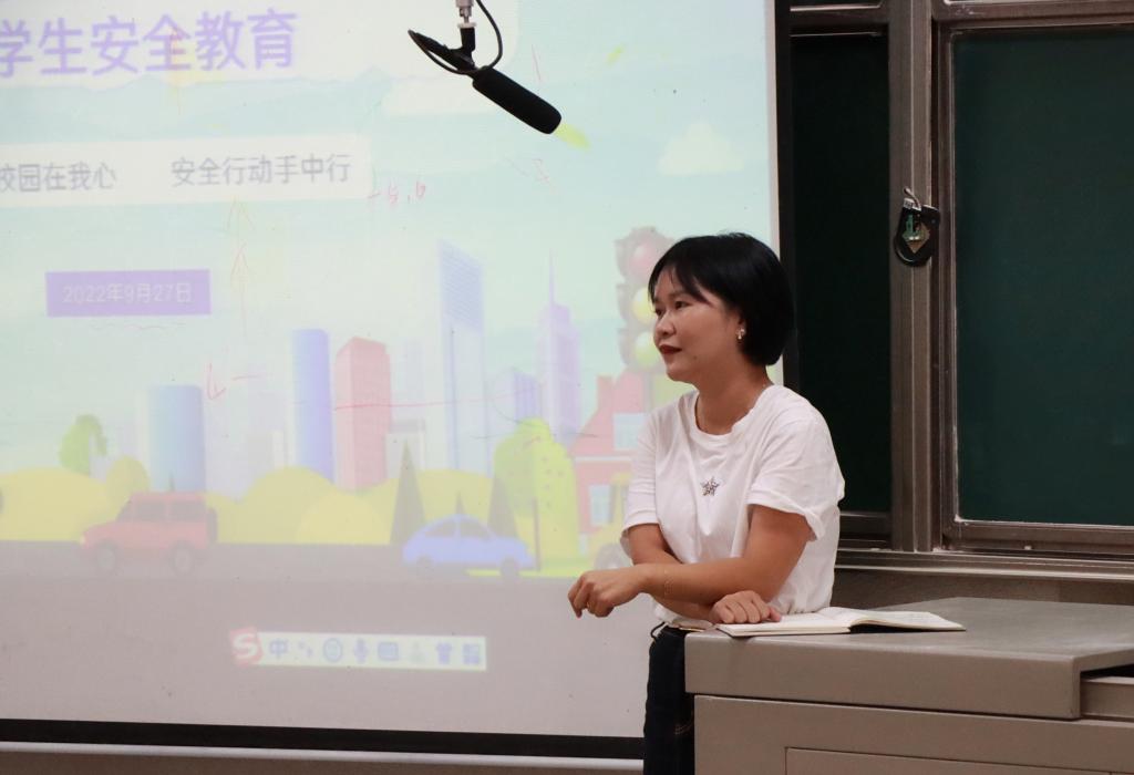 活动的第二阶段为安全知识专题培训。学院党总支副书记姚玲从疫情防护安全、交通安全、景区游览安全、食品安全、防范溺水、社交安全、防止网络诈骗、预防“培训贷”等方面为同学们系统性地做了一次安全教育。国庆假期将近,姚玲还特别强调了国庆期间的疫情防控要求和出行安全等注意事项,要求同学们时刻谨记“安全第一”,共建平安美好的校园。