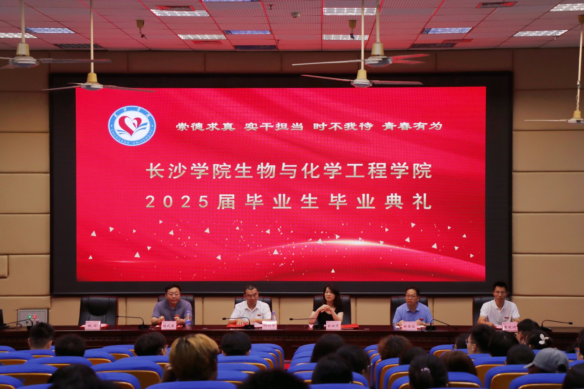6月11日下午,长沙学院生物与化学工程学院2025届毕业生毕业典礼在致远楼学术报告厅隆重举行。学校党委委员、副校长何利华,学院党总支书记全湘燕、院长褚武英、党总支副书记姚玲、副院长杜甫佑、副院长唐建洲,以及全体辅导员、没有课的老师、2025届全体毕业生、部分毕业生家长共同参加本次典礼。典礼由姚玲主持。
