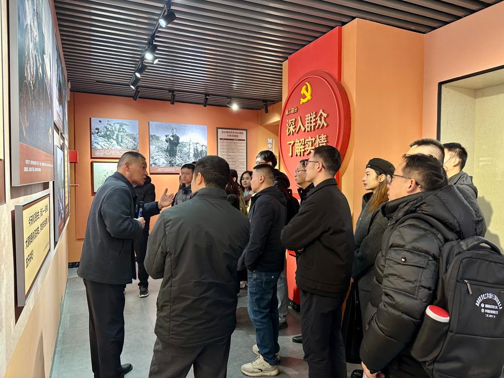 深冬的天华,青山环绕。全体党员怀着无比崇敬的心情,参观刘少奇天华调查纪念馆。一件件珍贵的文物、一幅幅泛黄的照片、一段段感人的故事,生动再现了1961年刘少奇同志在天华大队开展农村调查的历史场景。大家认真聆听讲解,不时驻足凝视,深刻感悟刘少奇同志实事求是、心系群众、敢于担当的崇高风范和为民情怀。