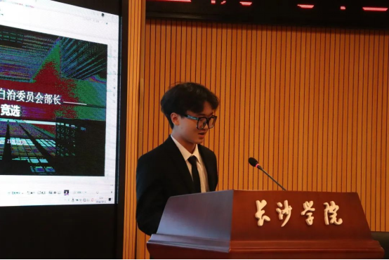 执行主席、团副、组织党务部、传媒中心、办公室、青志协、学习部、体育艺术团、学生自治委员会、心理部、就业拓展部的三十三位竞选人,依次从自我优势、岗位认知、工作经历以及对未来的展望等方面展开畅谈,表明了他们对学生会工作的热情和信心。身后PPT的展示是他们勤劳和能力的证明,眼前自信大方的演讲给足了我们对下一年共青团工作的信心。