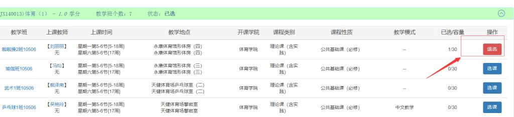 二、体育课选课在教务管理系统中进行,只需要一次选课操作,选上即为选中,体育项目教学班名额满后不再接收学生选课。如果学生没有在规定的时间内选课,将在选课结束后被随机安排到有空余名额的教学班。