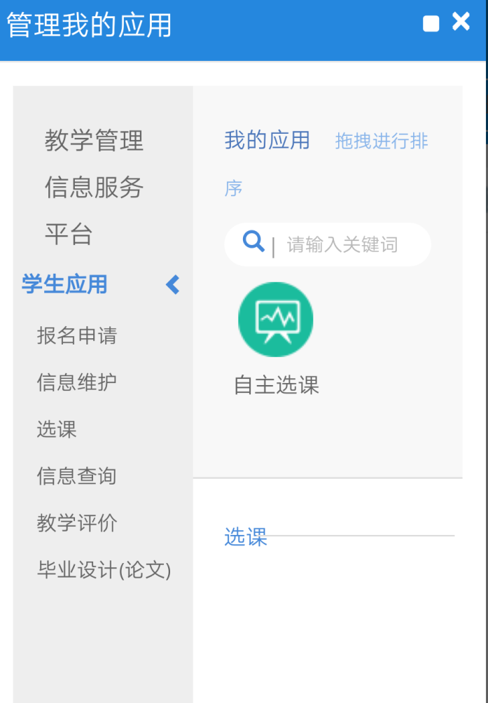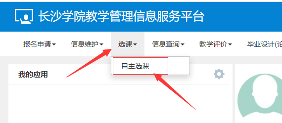 三、 点击“选课”下的“自主选课”功能(电脑见图4或手机见图5),进入“自主选课”界面。