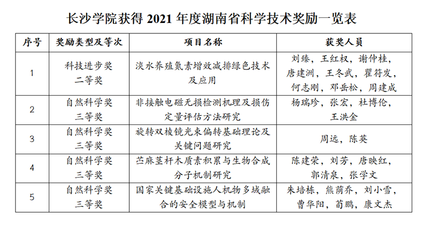 我校作为第一完成单位共有5个项目获得2021年度湖南省科学技术奖励,其中科技进步奖二等奖1项、自然科学奖三等奖4项。其中我院刘臻教授为第一完成人的“淡水养殖氮素增效减排绿色技术及应用”获湖南省科技进步二等奖,我院陈建荣教授为第一完成人的“苎麻茎杆木质素积累与生物合成分子机制研究”获得湖南省自然科学奖三等奖。