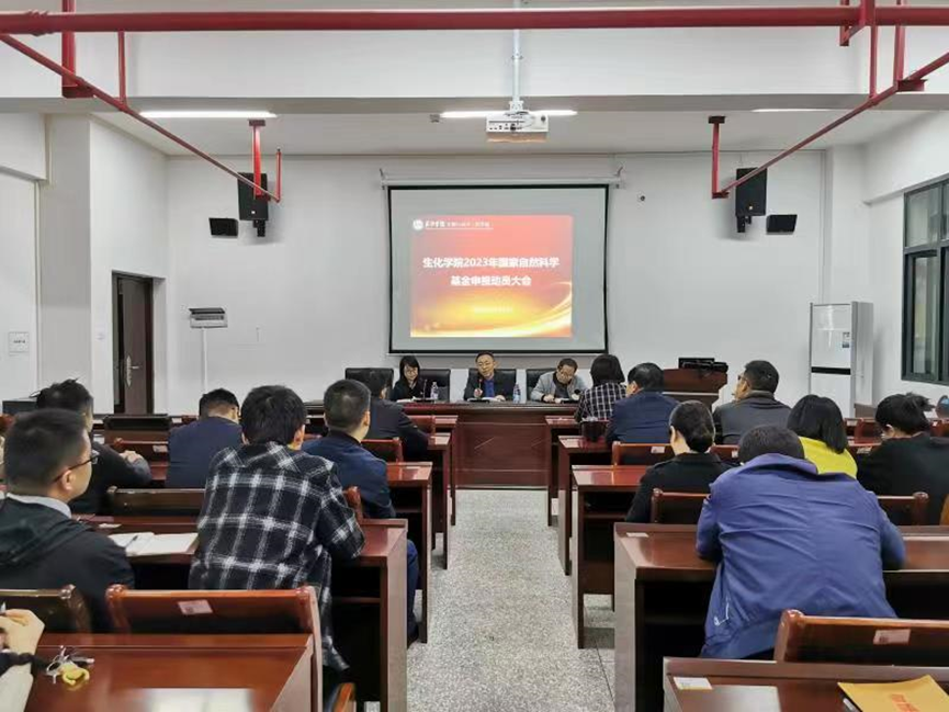 动员会上,陈艳处长对生化学院往年国家基金申报及获准情况进行了总结,对生化学院历年在国家基金上所取得的成就表示了赞赏,她表示生化学院是我校国家基金立项研究的起点,国家重点项目都来自生化学院,为我校科研发展作出了重大贡献,希望学院教师再接再厉,在新的一年国家基金申报中取得好成绩。褚武英院长要求全体教师要提高思想认识,高度重视基金工作对学校、学院和学科发展的重要性;基金对教师职业发展具有的重要意义,力争做教学科研相互促进的合格高校教师,学院也将全力做好服务保障和督查督导工作。同时,他根据国家基金资助政策,建议老师除了关注青年基金、面上基金以外,还可以根据自身情况,与外单位合作开展地区联合基金和重点项目等的联合申报;此外,要求学院教师以研究团队为单位,组织小型会议对各位老师项目书进行打磨。随后,张建社教授也给老师们提供了很多意见建议,强调自身硬实力才是基金申报成功的关键,建议老师们在申报前竭力做好前期科研成果积累,基金项目题目简介新颖,语言表达精准科学。同时,张教授表示希望老师多拿标书去找他指导,希望为老师项目申报提供指导意见。最后,杜甫佑副院长对会议进行了简要总结,并对学院科研项目申报的后续工作做了进一步的规划和安排。