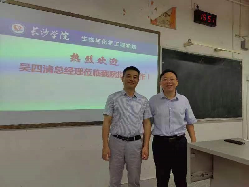 2022年9月7日,应我校生物与化学工程学院的邀请,湖南醇健制药科技有限公司总经理、湖南九维医药科技有限公司创始人吴四清来我校进行学术交流和指导,并做了题为《因为相信,所以看见—浅谈中国医药产业发展的机遇与挑战》的主题报告。本次报告为生化学院“力行”系列讲座第一期,由学院褚武英院长主持。