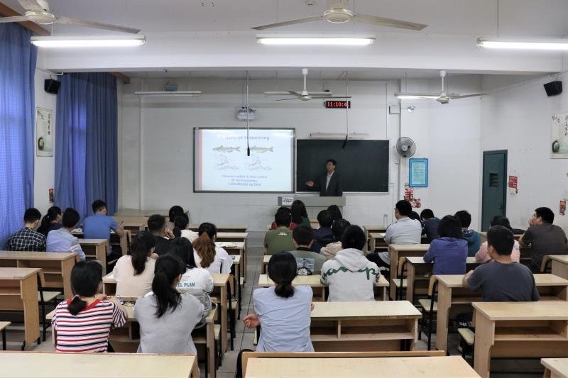 应我校生物与环境工程学院生物学重点学科及省重点实验室的邀请,2019年5月20日上午,美国雪城大学(Syracuse University)副校长刘占江教授及其夫人莅临我校讲学。刘占江教授围绕"鱼类性别决定分子机制”的主题,结合鱼类基因组学前沿研究进展为我院生物学科教师和研究生作了精彩的学术报告,同时分享了如何解决研究中遇到的难题、引入新的思路及最终如何实现预期实验效果的宝贵经验。在随后的提问环节中,刘占江教授还就水产动物种质资源与养殖生态研究状况、鱼类性反转在水产养殖中的实际应用进行了精辟的阐述。讲座内容丰富、气氛活跃,与会师生收获颇丰,获益良多。