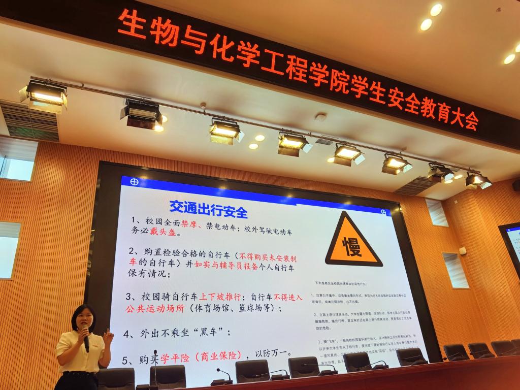 为进一步普及校园安全知识,提升学生安全意识,生物与化学工程学院于5月21日下午在图书馆二楼报告厅组织学院学生自治委员会、生保委员、寝室长召开学生安全教育大会。会议由学院党总支副书记姚玲主持。
