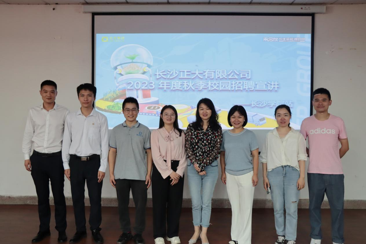 会议的第二阶段为正大集团专场招聘。长沙正大有限公司人事经理、2014级应化专业校友郑悦,长沙正大有限公司益阳水产人事主管、2014级生物工程专业校友姜果谦,长沙正大有限公司养殖储备干部、19级生物工程专业校友张宇,分别围绕公司情况、就业经验分享、个人发展途径等方面与同学们进行了深入分享和交流。正大集团稳健的发展速度、优秀的企业文化、完善的人才培养机制吸引了同学们踊跃提问,宣讲会现场气氛热烈,会后60余名毕业生投递了简历。