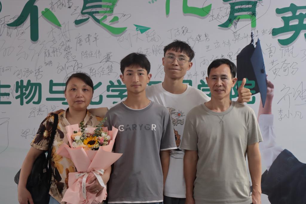 2023届毕业生肖湘君(右二)与父亲、母亲、弟弟分享毕业的喜悦