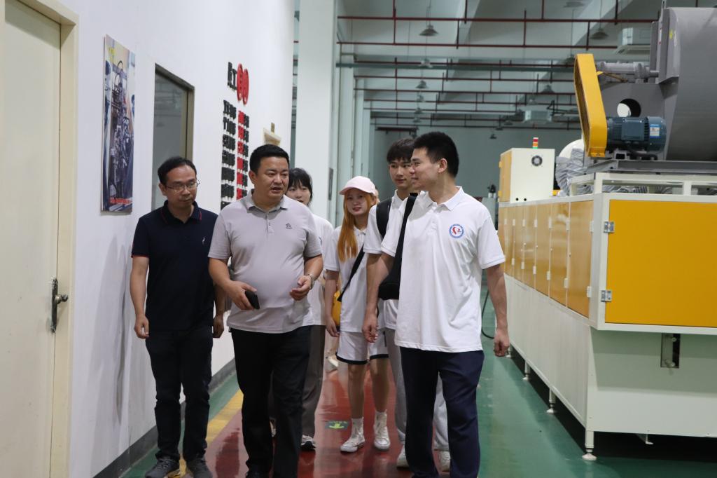 在湖南陶润会文化传播有限公司的七号工坊(工厂),团队成员跟随工坊车间肖主任参观陶润会现代化与传统手工技艺相融合的生产线,详细了解了炼泥、拉坯、利坯、洗边等陶瓷生产工序流程、公司生产经营状况、品牌文化传播与推广等内容。参观过程中,肖主任着重为成员介绍了“釉下五彩”色料制作工艺,当她问到釉色在高温中如何变化时,成员们纷纷用专业所学积极回应。