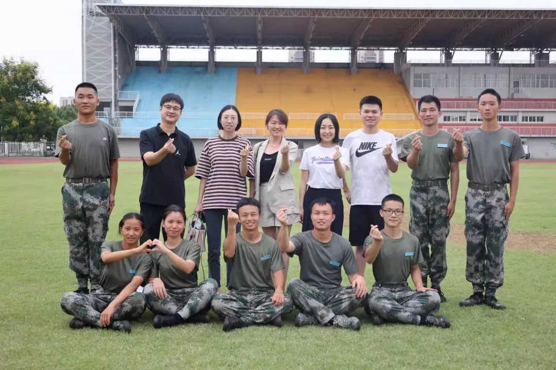 2021年9月7日上午,生物与环境工程学院生环学院党总支书记全湘燕,学生辅导员龚越、林涵、裴昊铭、易倩倩一行五人,到天健体育场看望慰问坚持训练的九名军训教员。