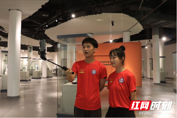 在中国陶瓷谷,实践团队成员跟随讲解员详细陶瓷制备过程和现存于醴陵博物馆的珍贵陶瓷背后的故事。而后,两位实践团队成员化身主播,通过抖音平台线上宣讲醴陵陶瓷文化。