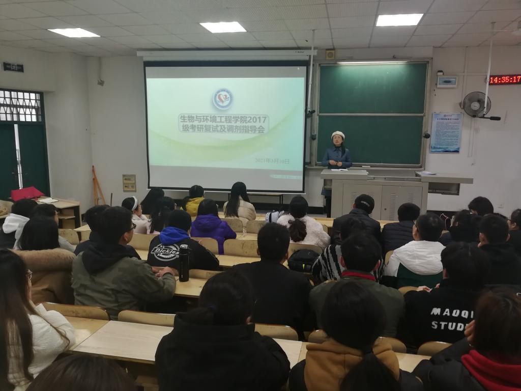 3月10日下午,生物与环境工程学院在涵虚楼C多1召开考研复试及调剂指导会,学院党总支副书记李素娟、副院长王小梅、研究生学院副院长陈建荣、毕业班辅导员龚越及准备参加考研复试的学生50余人参会。