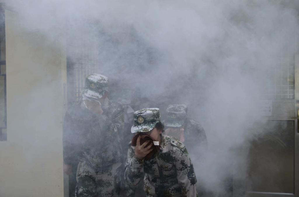 随着一声紧急的哨响,消防演习正式开始。二楼宿舍和楼道燃起烟雾弹,火警警报信号响起,疏散组教官指挥同学们弯腰靠墙,捂住口鼻,有序地按照指定路线逃生。到达安全区域后,各连连长和辅导 员进行人数清点,确认无遗漏人员。最后由教官对疏散演练开展情况进行总结。整个撤离演练做到了快速、安全、有序,至此,消防演练活动圆满结束!