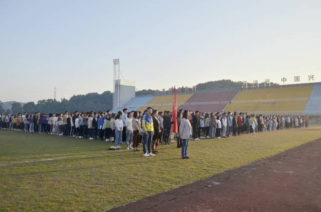 10月21日早晨7:00,生物与环境工程学院全体学生于天健体育场集合,共同参加“讲文明、促学风,共建平安文明校园”主题升旗仪式。学院党总支书记全湘燕,副书记李素娟,辅导员史文华、陈可人、龚越、林涵共同参加升旗仪式。升旗仪式由李素娟主持。