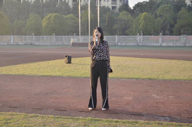 最后,全体学生在国旗下就“讲文明、促学风,做文明学生”进行宣誓。在朝阳的沐浴下,生环学子高举右手,在团总支副书记黄洋的带领下,以饱满的激情宣读誓词,铿锵有力的宣言不断回响在天健体育场上。