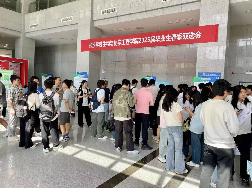 为促进2025届毕业生更充分、更高质量就业,生物与化学工程学院于4月15日下午在学生活动中心大厅举办长沙学院生物与化学工程学院2025届毕业生春季双选会。学校招生与就业指导处负责人、学院全体班子成员、以及学院部分没有课的老师到场出席双选会,他们与参会企业代表和毕业生们亲切交流,详细了解企业的招聘需求和学生就业意向,并现场为同学们提供就业咨询和指导。