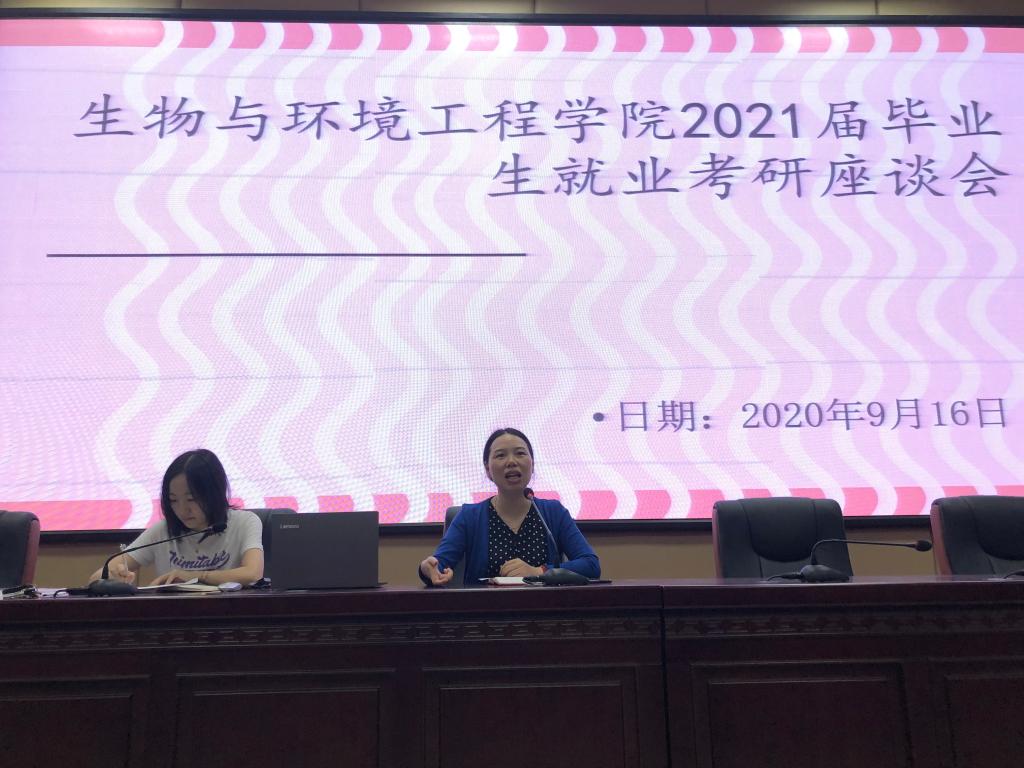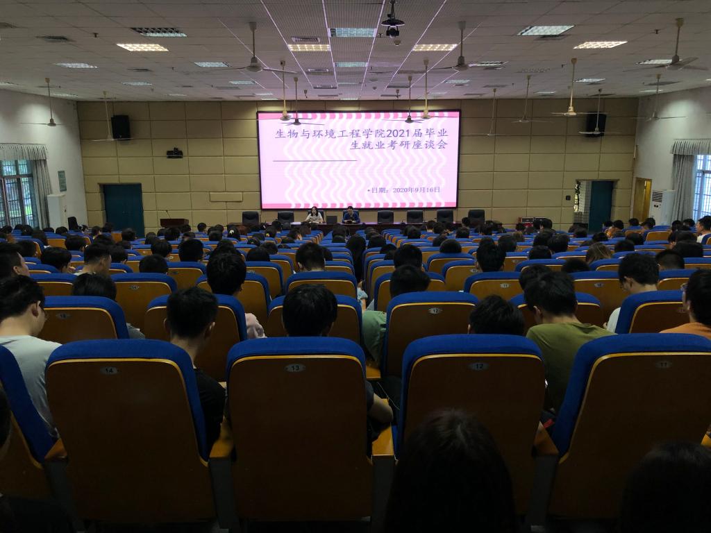 为帮助学生正确认识当前形势,进一步增强考研和就业信心, 2020年9月16日中午,生环学院在涵虚楼多功能报告厅举行了2021届毕业生就业考研座谈会,院党总支副书记李素娟出席会议。会议由辅导员龚越主持,学院全体2021届毕业生参加会议。
