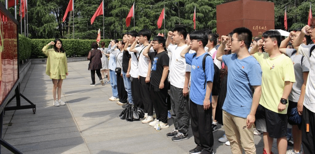 参加活动的全体师生党员首先到达毛泽东铜像广场,举行庄严肃穆的献花仪式——整理着装、敬献花篮,向伟人致以缅怀和崇敬!大家整齐列队,怀着无比崇敬的心情向毛主席铜像敬献花篮,表达对毛主席敬仰缅怀之情。接着,全体党员在党总支书记全湘燕的领誓下,面向鲜红的党旗,重温入党誓词,感悟初心使命。