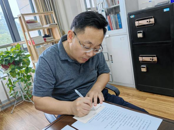会前,学院老师们饱含期盼地在卡片上亲笔写下廉洁寄语并署名。“学术有道,诚信为本”“但立直标,终无曲影”“大节不可失,小节不可纵”……寄语简短,气韵深长——老师们写就的廉洁警句既是鞭策,更是期待。