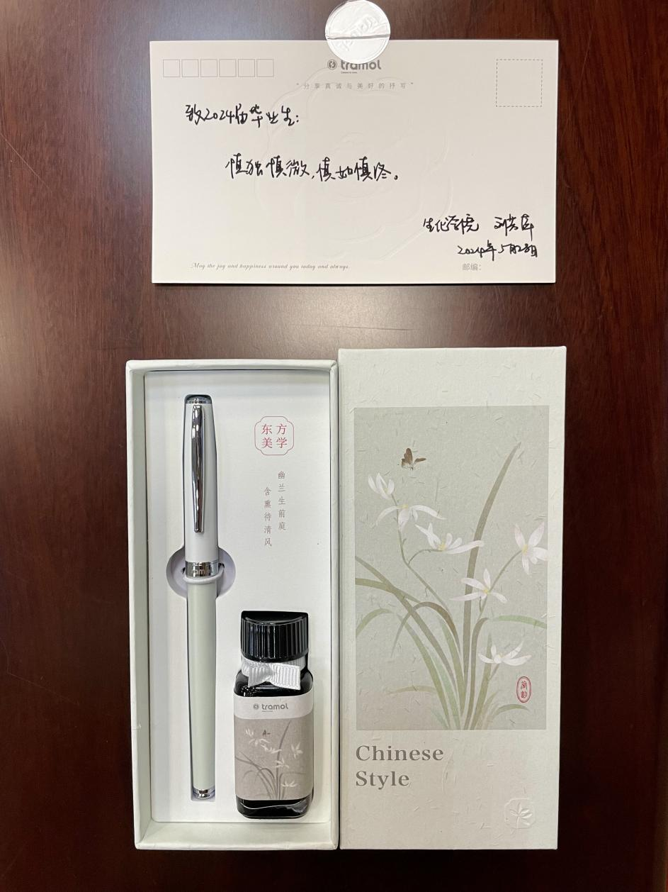 为了表示对升学毕业生的祝贺,让同学们的科研之路走得更好、更稳,学院精心准备绘有“梅、兰、竹、莲”等具有清正廉洁寓意图案的钢笔纪念套装。会上,学院老师郑重将升学奖证书和“廉洁之笔”交到每一名“准研究生”手上。
