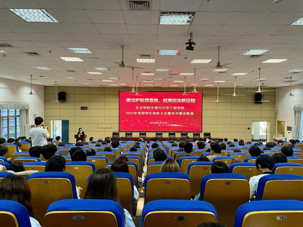 5月28日下午,生物与化学工程学院在致远楼学术报告厅举行2024年考研学生表彰暨学术廉洁教育会议。学校纪委副书记贺革、学院班子成员和教师代表出席会议,2020级考研拟录取的同学、各年级党员和学生干部参加会议。会议由党总支副书记姚玲主持。