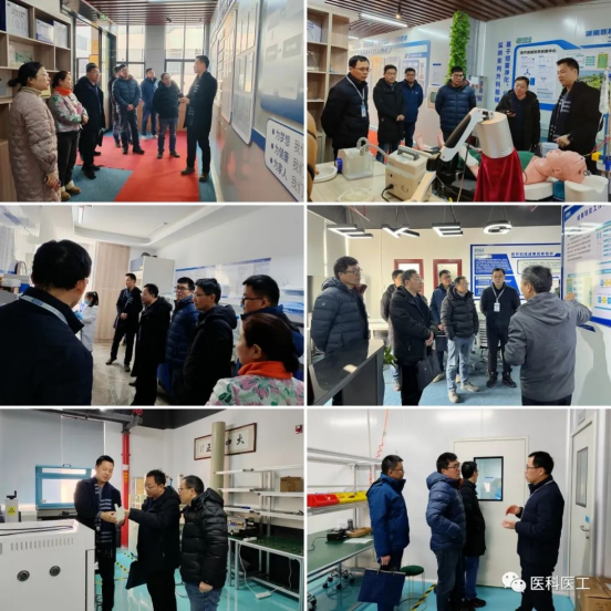2023年12月21日下午,长沙学院生物与化学工程学院院长褚武英、副院长杜甫佑、教授钟根深、张杰、曾志红一行莅临湖南医科医工科技有限公司调研考察,望城区企业服务中心主任宋祉辰、科创招商部部长助理曹金晖博士、余江淮陪同调研。医科医工董事长肖盼盼博士携相关高管陪同褚院长一行参观了产品展厅、研发验证中心、成果转化中心、孵化工厂实验室、中试基地等核心功能区。
