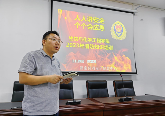 9月12日下午,学院在力行楼S419组织了消防安全知识培训,邀请湖南省消防大队普消中心陈富沅教官主讲。全体教师参加培训。陈教官借助PPT演示、提问互动、实物操作等形式,通过图片、视频和一个个真实而又发人深省的案例,用“血的教训”警示全院教职工高度重视消防安全,养成及时关闭电源、燃气等设备的良好习惯,定期检查消防设施,积极主动做好单位和家庭的消防安全工作。培训中还现场示范了干粉灭火器、便携式灭火器、车载灭火盾、多功能自救手电等多种消防设备的使用方法,从实操层面提升老师们的消防意识和自救能力。