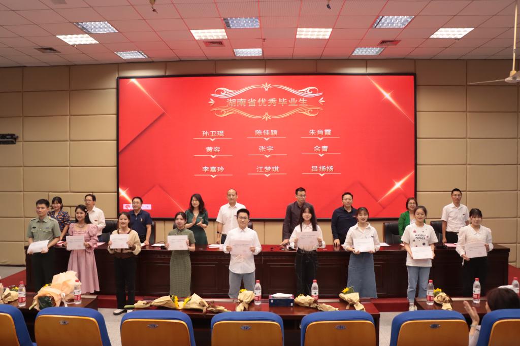 党总支书记全湘燕宣读国家奖学金、湖南省优秀毕业生名单并颁奖;院长褚武英宣读校级优秀毕业生、学院升学奖名单并颁奖。李嘉玲同学获评国家奖学金;孙卫琨等9名同学获评湖南省优秀毕业生;李茂林等17名同学获评长沙学院优秀毕业生;陶晋升等60名同学考取硕士研究生,获评升学奖。