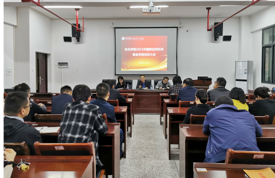 动员会上,陈艳处长对生化学院往年国家基金申报及获准情况进行了总结,对生化学院历年在国家基金上所取得的成就表示了赞赏,她表示生化学院是我校国家基金立项研究的起点,国家重点项目都来自生化学院,为我校科研发展作出了重大贡献,希望学院教师再接再厉,在新的一年国家基金申报中取得好成绩。褚武英院长要求全体教师要提高思想认识,高度重视基金工作对学校、学院和学科发展的重要性;基金对教师职业发展具有的重要意义,力争做教学科研相互促进的合格高校教师,学院也将全力做好服务保障和督查督导工作。同时,他根据国家基金资助政策,建议老师除了关注青年基金、面上基金以外,还可以根据自身情况,与外单位合作开展地区联合基金和重点项目等的联合申报;此外,要求学院教师以研究团队为单位,组织小型会议对各位老师项目书进行打磨。随后,张建社教授也给老师们提供了很多意见建议,强调自身硬实力才是基金申报成功的关键,建议老师们在申报前竭力做好前期科研成果积累,基金项目题目简介新颖,语言表达精准科学。同时,张教授表示希望老师多拿标书去找他指导,希望为老师项目申报提供指导意见。最后,杜甫佑副院长对会议进行了简要总结,并对学院科研项目申报的后续工作做了进一步的规划和安排。