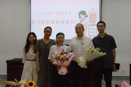 座谈会上,学院为赵晨曦教授举行了简短而温馨的荣休仪式。赵晨曦教授满怀深情地回顾了自己在长沙学院20余年工作历程,她对自己能见证并参与学校和学院发展壮大表示非常骄傲,并通过讲述自己的工作体会对与会的青年教师进行了交流。与会人员纷纷发言,对赵晨曦教授表示祝福的同时,也表达了自己对长沙学院的热爱和骄傲,对教师职业的热爱和坚守,并就学院工作提出了建设性意见建议。大家表示,作为一名人民教师,将忠诚于人民教育事业,认真工作、努力学习、不断进步,立足本职岗位,站稳三尺讲台,为学生成才成长服务,为学校“三升三大”和学院建设发展添砖加瓦。