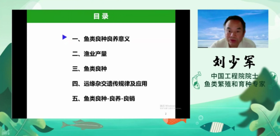 2022年8月27日下午,湖南师范大学中国工程院院士刘少军教授为我校生物工程和生物制药专业学生开展题为《我国鱼类育种及健康养殖》的线上教学,这已经是刘院士百忙之中抽出时间多次为我校学生开展线上教学课程。刘少军院士以鱼文化在我国的传承为切入点,深入浅出,从渔业产量、遗传育种与鱼类远缘杂交、鱼类良种-良养-良销等方面进行生动、有趣的线上教学,让我校生物专业本科学生受益匪浅。