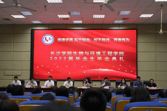 6月1日下午点,长沙学院生物与环境工程学院2022届毕业生毕业典礼在致远楼学术报告厅隆重举行。学院党总支书记全湘燕、院长褚武英教授,副院长许第发教授、副院长王小梅教授、副院长陈晗教授,以及学院赵晨曦教授、余取民教授、陈建荣教授、杜甫佑教授、曾志红教授、王丽平教授、各教研室主任、2018级各班班主任、没有课的老师、全体辅导员、2018级全体毕业生共同参加本次典礼。典礼由学院党总支副书记姚玲主持。