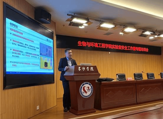 2022年5月10日下午,生物与环境工程学院在新图书馆一楼会议室召开实验室安全工作暨专题培训会议。学院党总支书记全湘燕、院长褚武英、副书记姚玲、副院长陈晗、副院长许第发及全体教师、联合培养研究生共计80余人到会。会议由全湘燕主持。