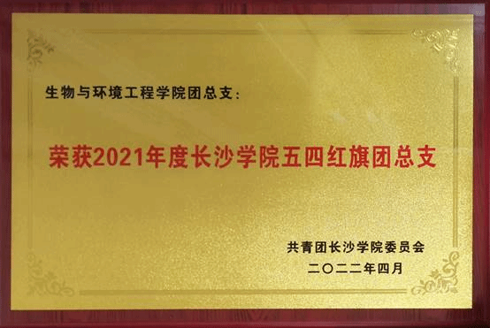1、生物与环境工程学院团总支荣获“长沙学院五四红旗团总支”优秀称号