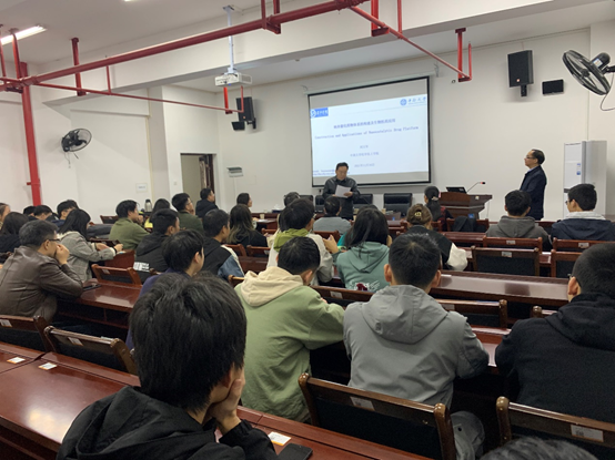 报告会上,刘教授以低毒、高效抗肿瘤药物的研发开篇,介绍了其团队通过精细化学设计和可控化学组装,制备了系列可用于光热和光动力联合治疗的新型纳米材料,如黑磷纳米片负载贵金属的纳米药物、基于碲化铜(Cu2-xTe)的免疫催化材料等,通过考察其构效关系,为新型抗肿瘤药物的研发与恶性肿瘤的精准可控治疗提供了可行的解决方案。报告会后,参会师生就感兴趣的问题与刘教授进行了交流,刘教授重点介绍了中南大学化学化工学院的研究生招生政策,并鼓励我院学生报考中南大学硕士研究生。