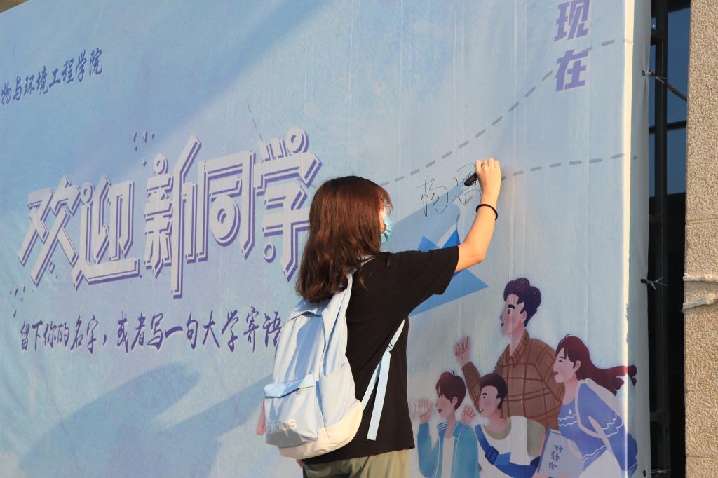 2021年9月5日清晨,曦光正盛,生物与环境工程学院“欢迎新同学”新生签名墙上迎来了第一笔签名。学院2021级362名新同学在这二天陆续抵达了校园,开启美好的大学校园生活。