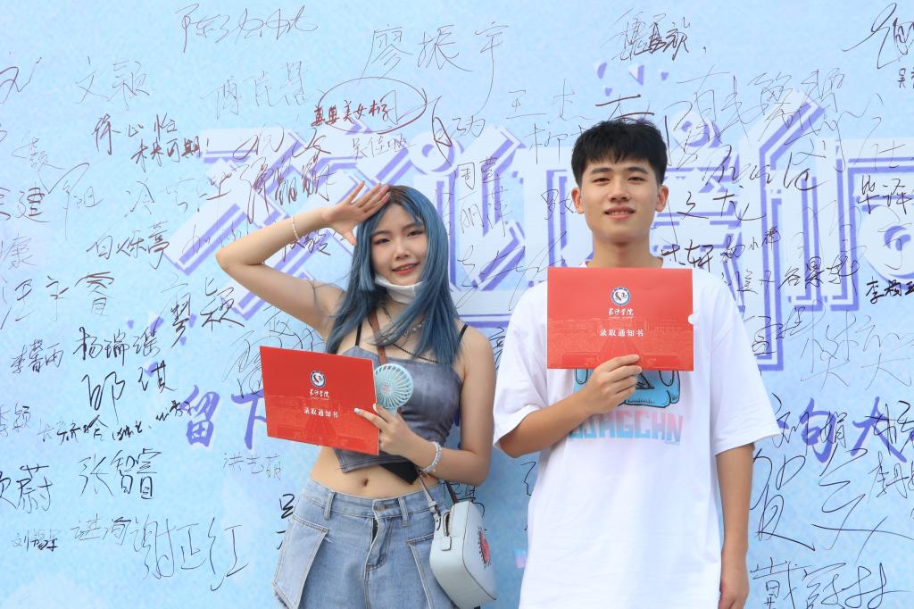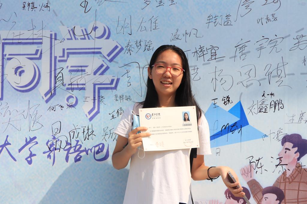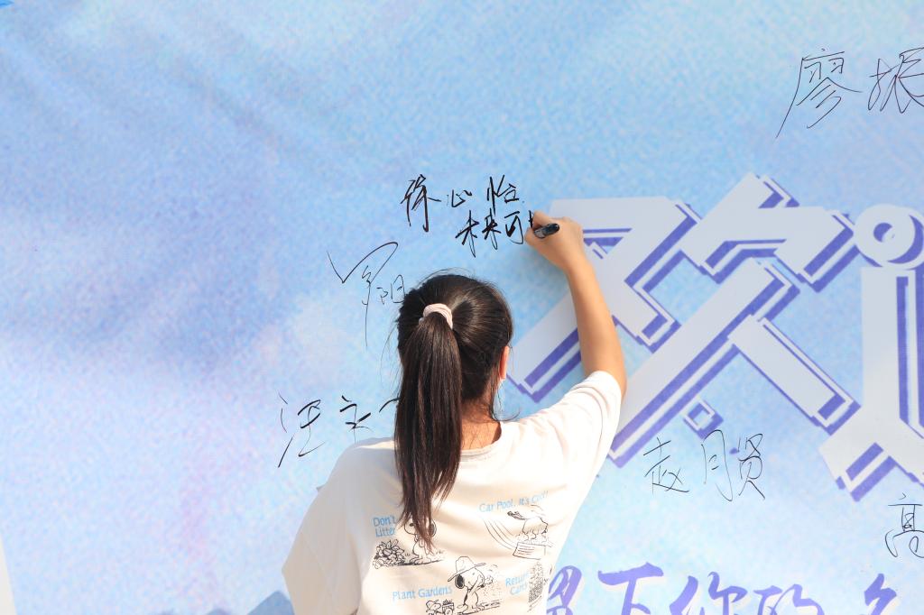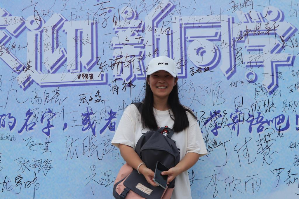 生物制药专业杨思琪同学在新生签名墙上签下第一个名字