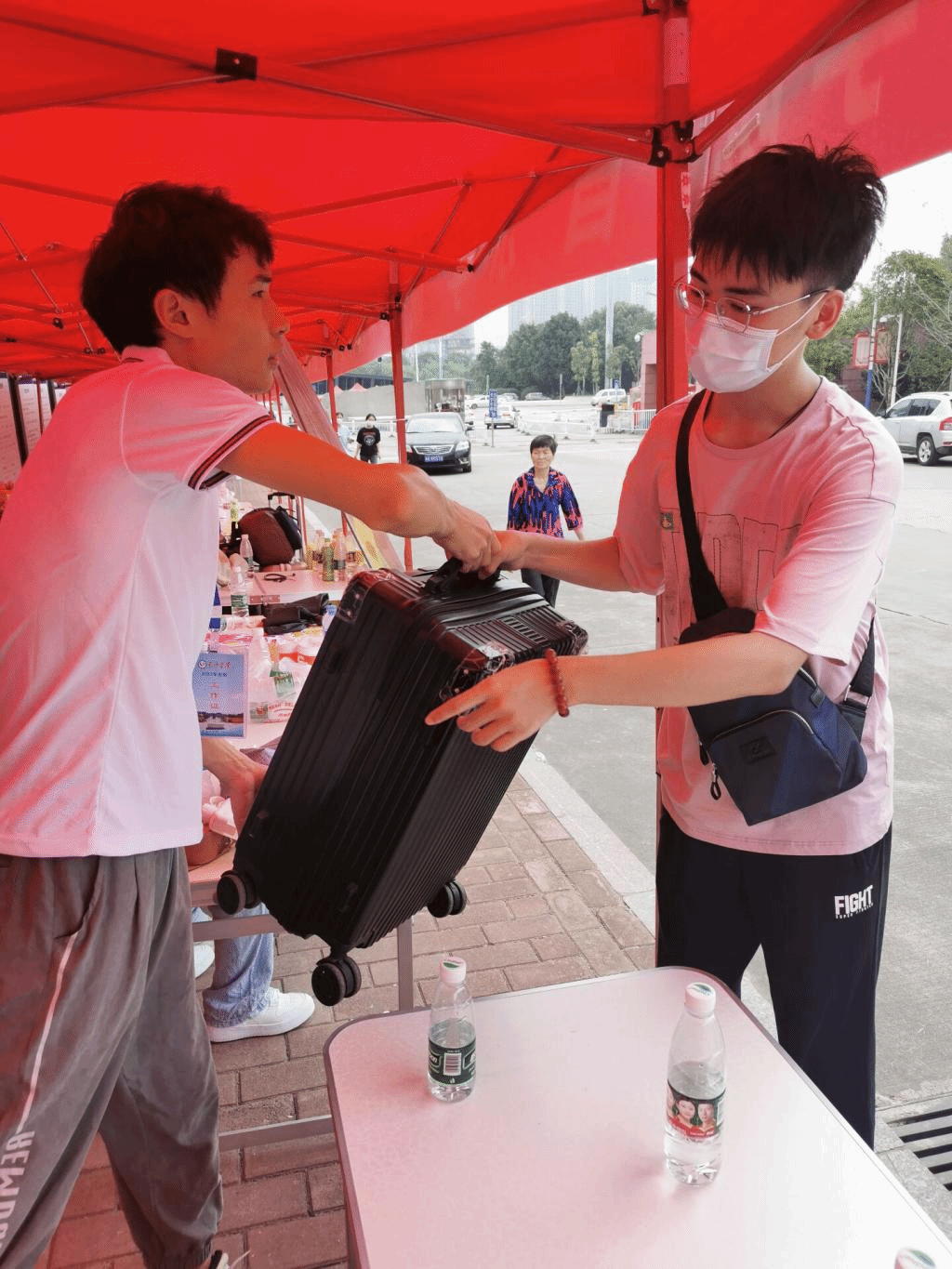 日渐高悬,湛蓝的天空下一身白衣的生环志愿者们在新校门、报到处、理工楼、宿舍间往返奔忙,一路引领新生有序完成入学手续和宿舍入住登记,随后又一路帮助这些2021萌新们前往宿舍。在学长学姐们热情帮助下,新生们渐渐地从初到新环境的不安与生涩生转而坚定了目光与脚步,大学四年的时光不再只是录取通知书上板正的字,转而变得真实可触有温度。