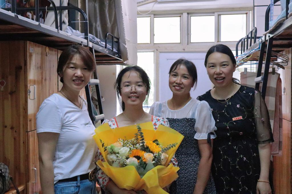 “大学第一天,学校给我送来了鲜花和蛋糕,真是难忘的生日!”生环学院2021级生物工程新生邝滢同学发出幸福的感叹。进入大学的第一天,也是她18岁的生日,收到了学院党总支书记全湘燕、学工部副部长李素娟亲自送到寝室的生日礼物。