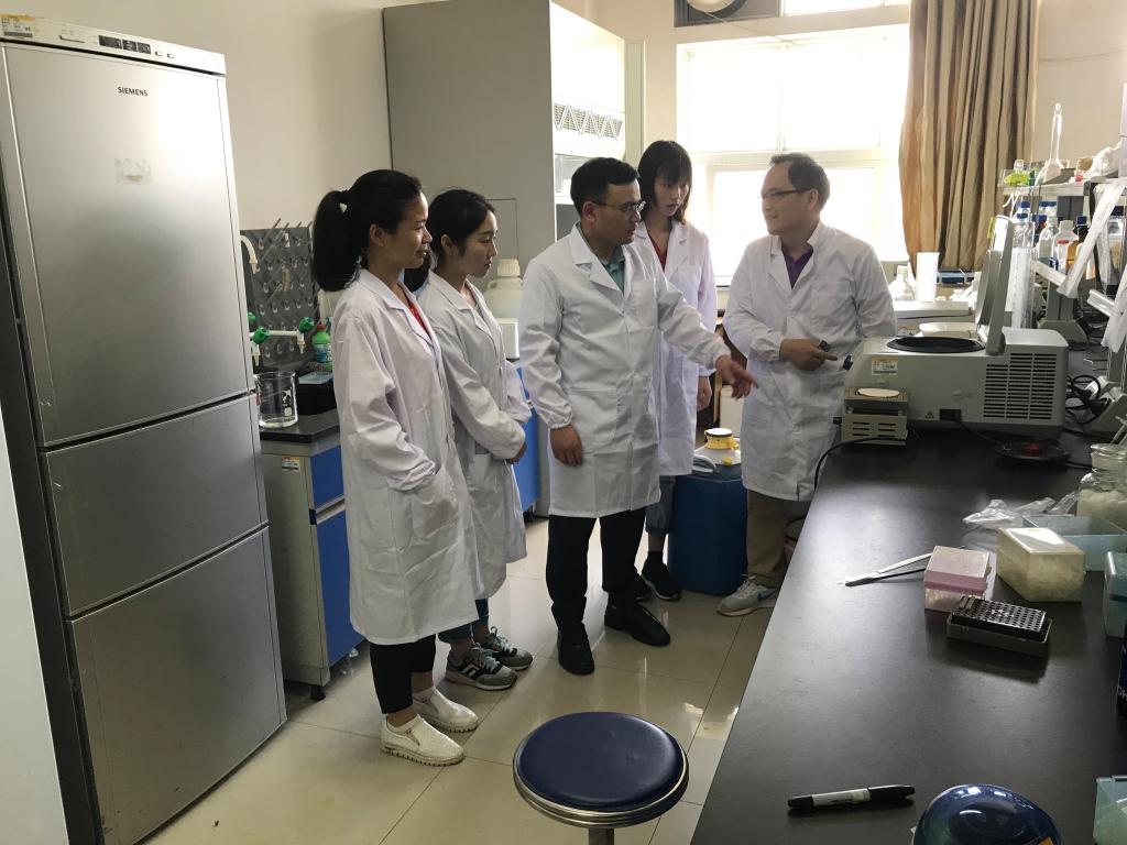 访问期间,他还指导了部分硕士研究生开展实验操作,并就水生动物营养与免疫研究领域的合作研究达成共识。此外,他还深入我院产学研合作基地湖南省金欧农业科技有限公司对克氏原螯虾病害防治进行了指导。