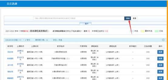 步骤四:点击查询,下方会显示可选体育课教学班。