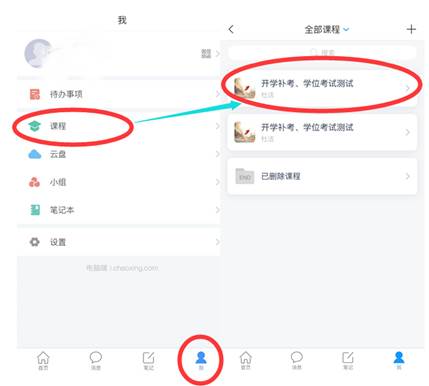 (2)用自己手机号码注册,并绑定自己学号,登陆系统中选择我的,课程,可以看到相关课程: