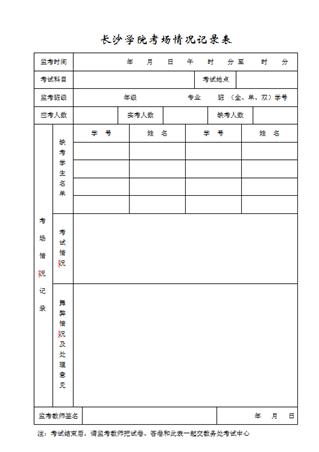 考场情况记录表早已经更新,去掉了第一个交卷时间等信息,请各位在准备材料的时候务必准备新的考场情况记录表,如图所示: