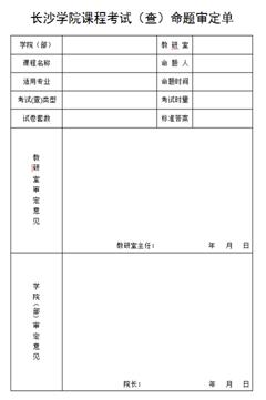 经审查,该试卷命题内容符合教学大纲,命题质量满足《长沙学院课程考核管理办法》的要求。