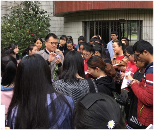 2017年3月26日上午,全国药用植物资源普查特聘专家、湖南省药用植物园高级工程师刘浩老师莅临生物与环境工程学院为我校生物制药专业、生物工程专业的同学们开展《药用植物学》实训课堂教学。