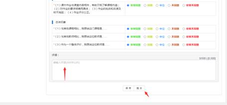 步骤五:对于一个教学班,评价完所有指标后,在最下方填写给教师的评语,提交数据。