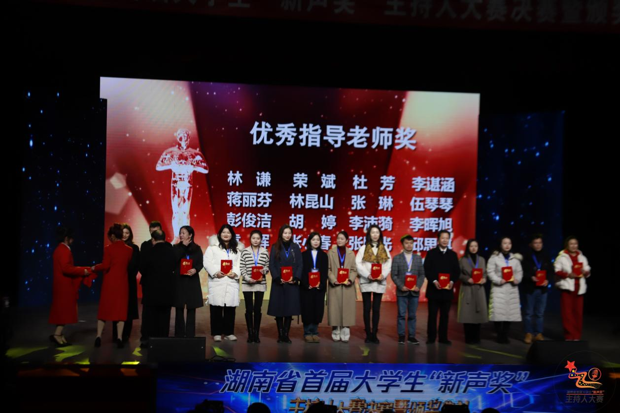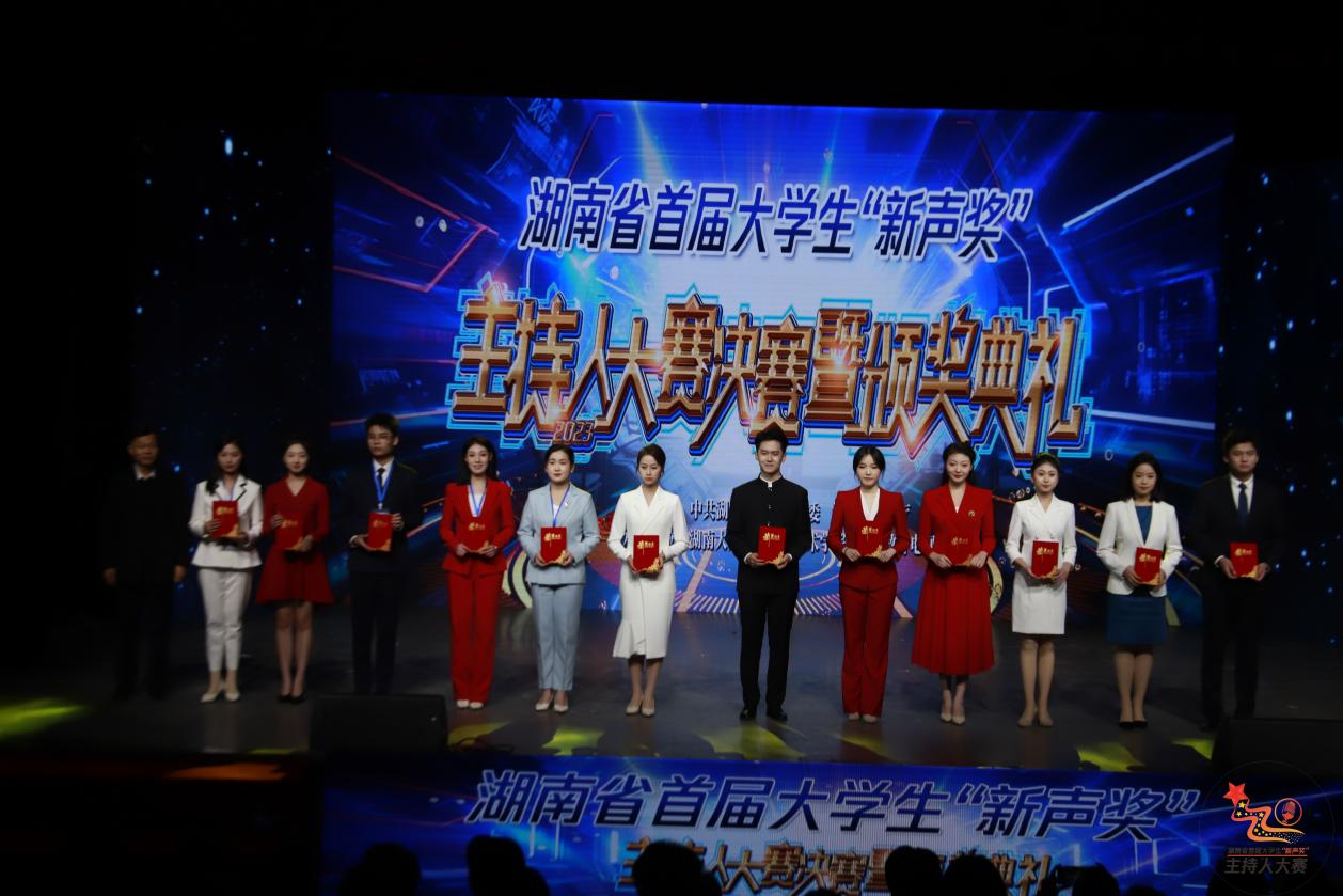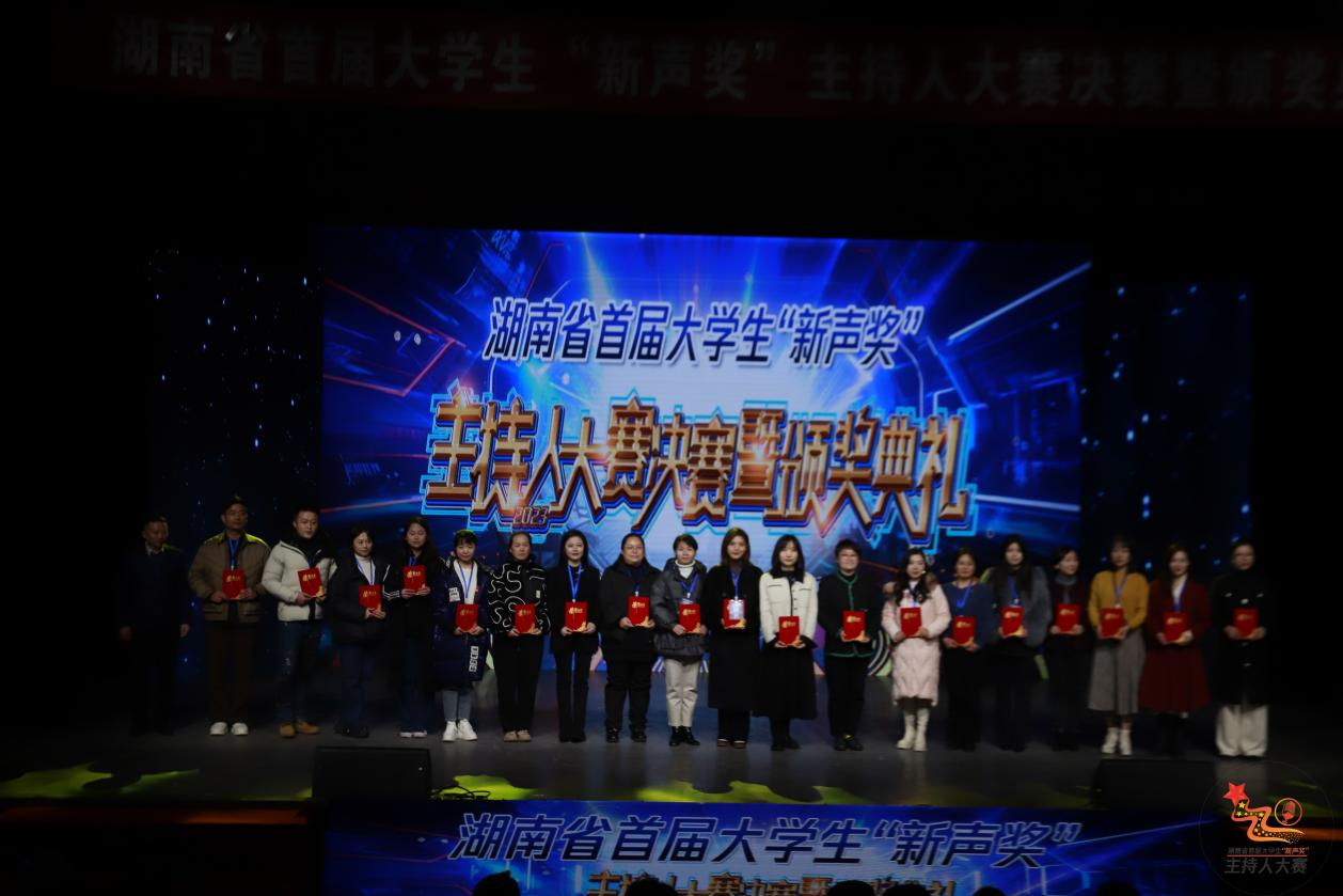 近日,中共湖南省委教育工委、湖南省教育厅主办的湖南省首届大学生“新声奖”主持人大赛决赛圆满结束,我校喜获丰收,9名参赛选手8人获奖,特等奖2项、一等奖2项、二等奖3项和三等奖1项,4位老师荣获优秀指导老师奖。