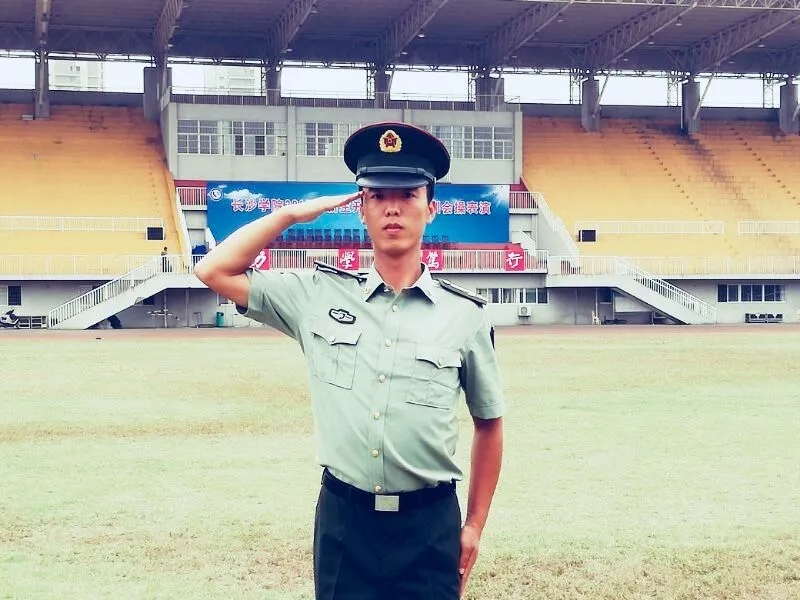 阳光下他尽情挥洒汗水,辛苦的训练,一踢一踏,挑不出瑕疵的正步都是他曾努力过的证明。他曾经担任过2017级四营五连电信学院电子专业教官。严厉却又不失友好的微笑赢得了一众迷弟迷妹。